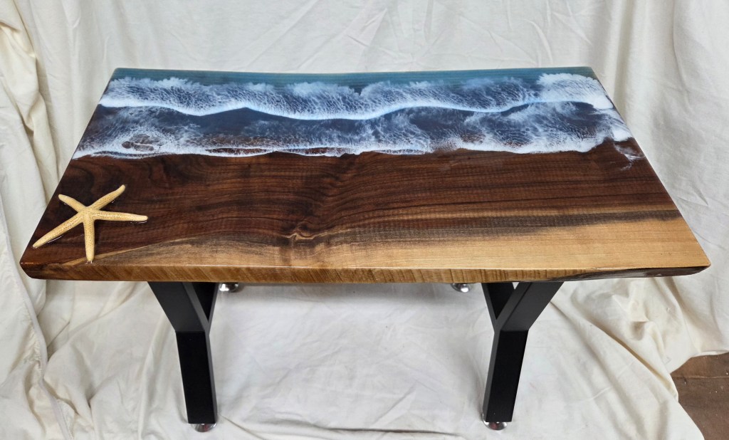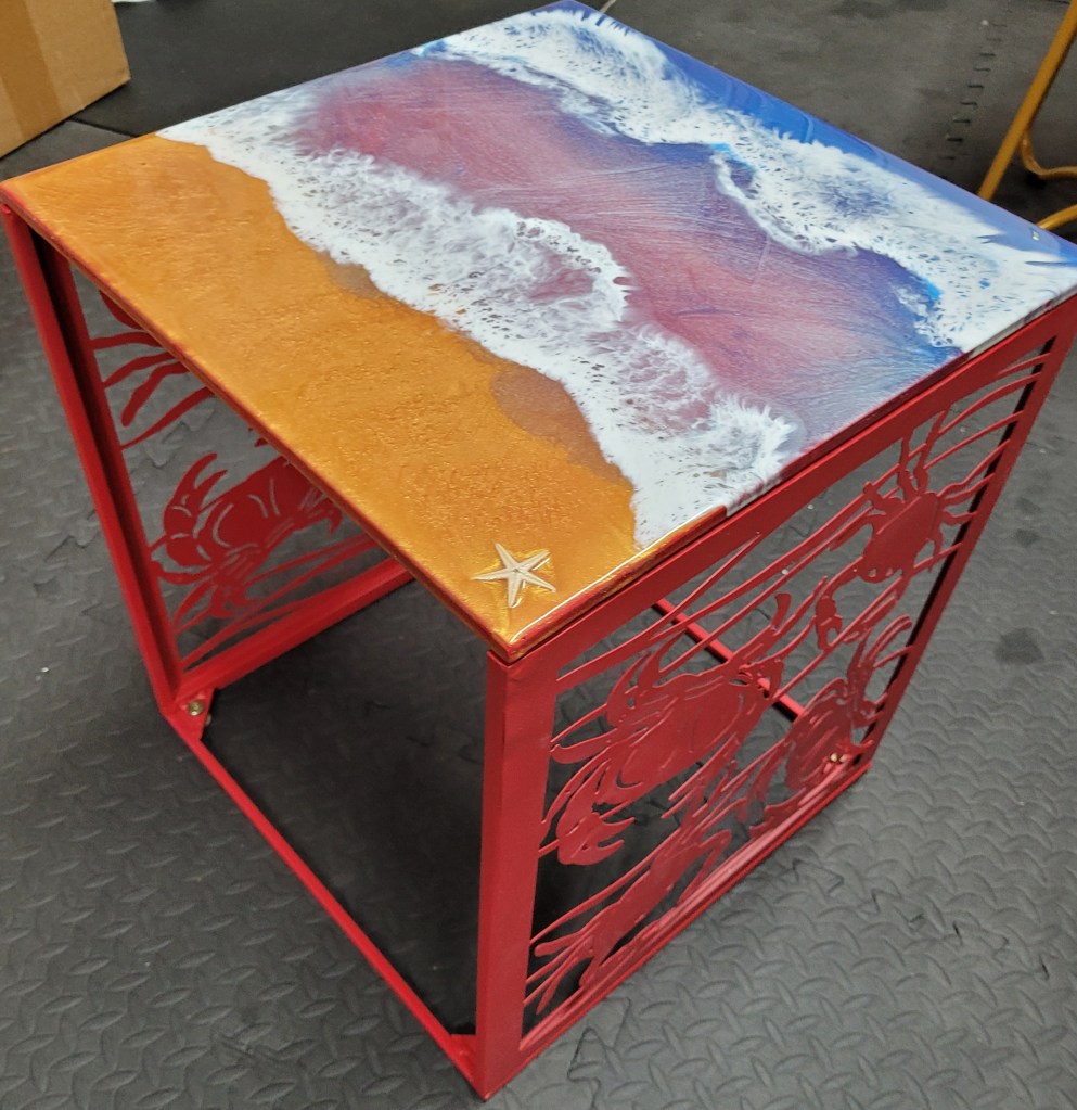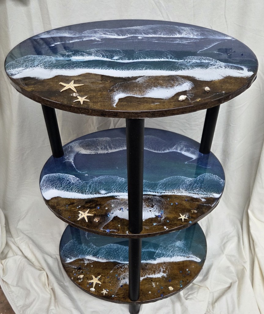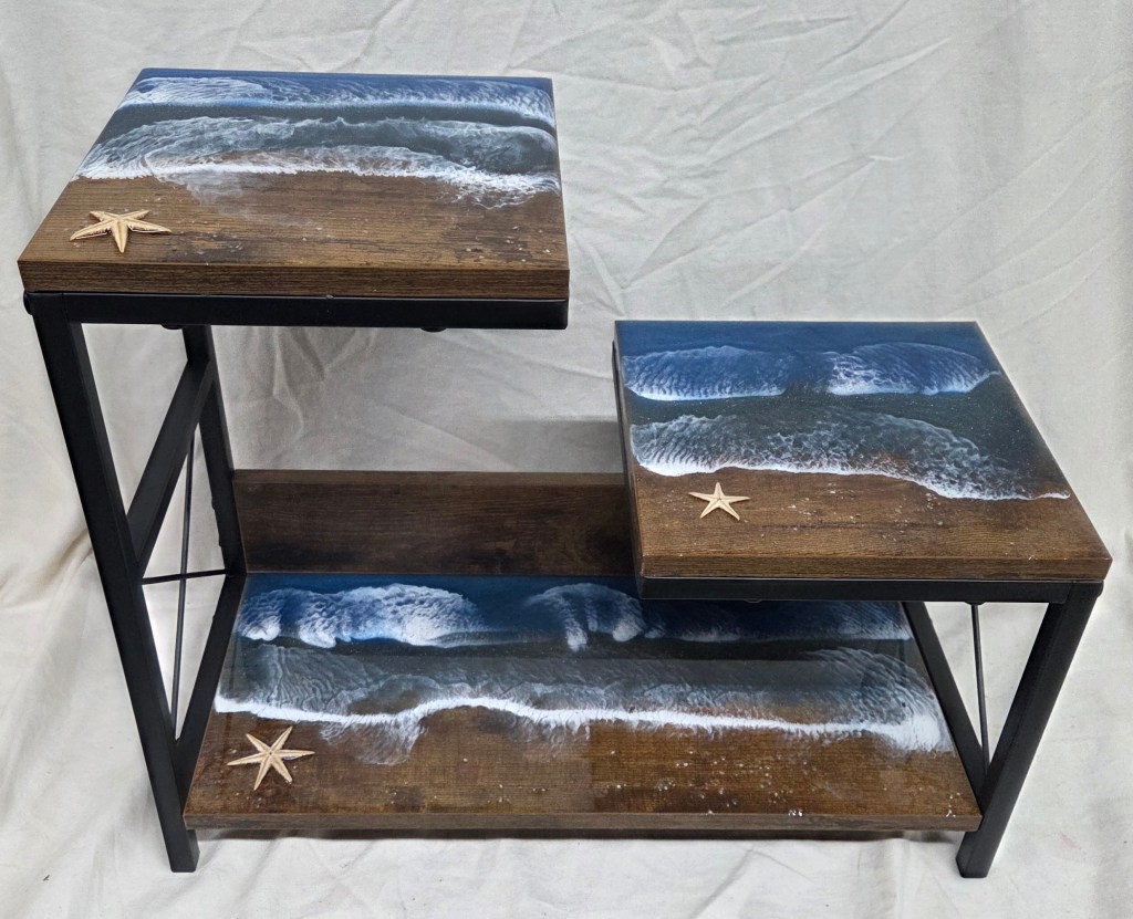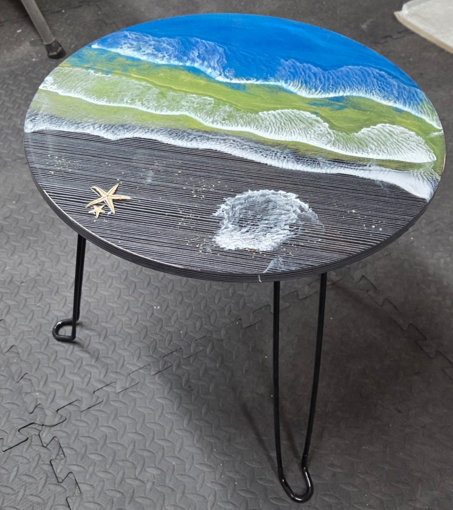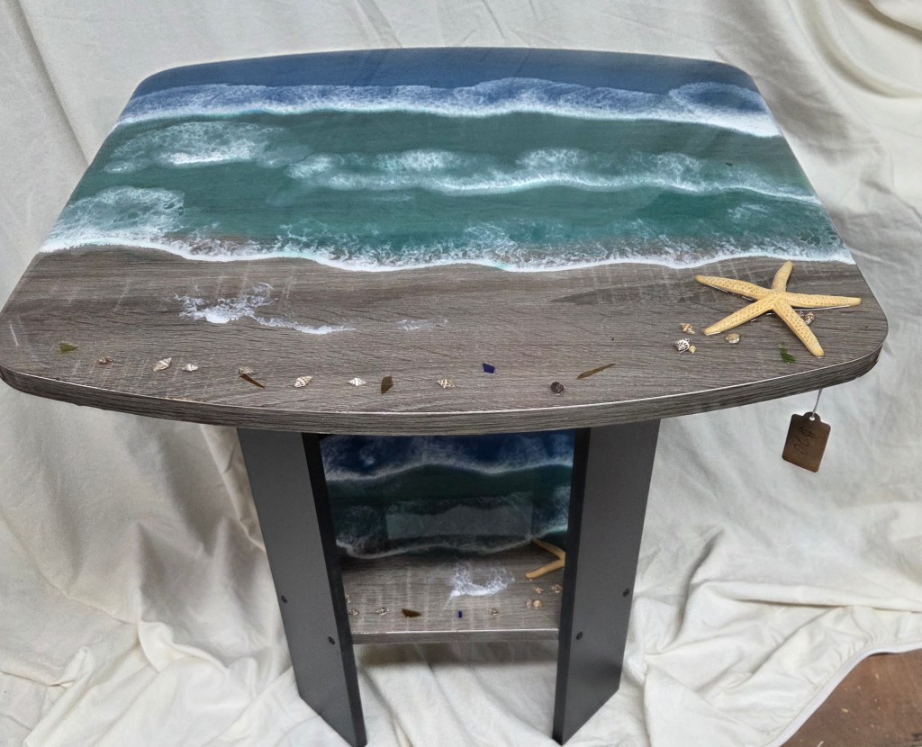 Rough Edge Ocean Scene Epoxy Coating Side Table – $150