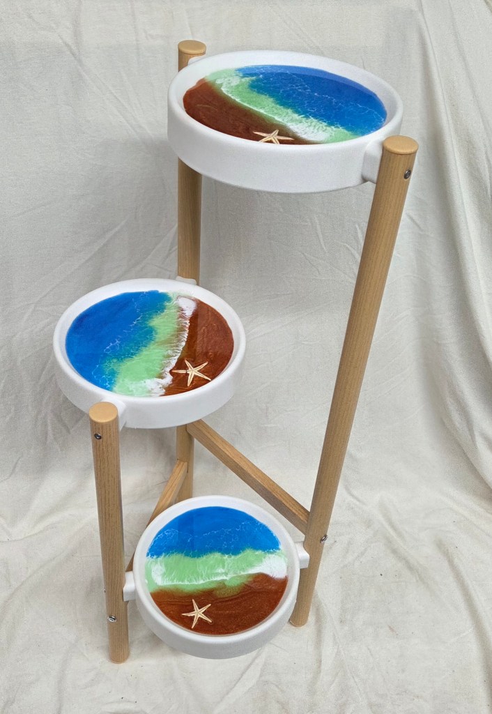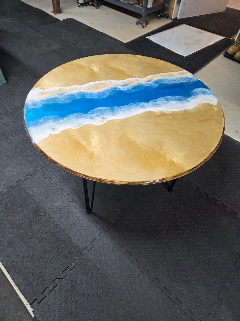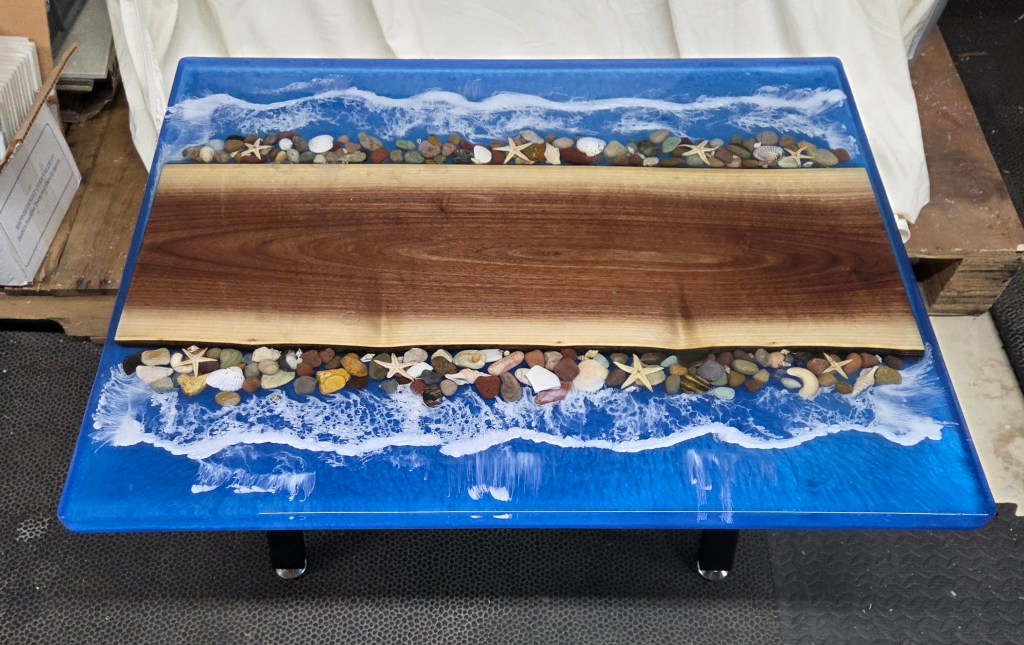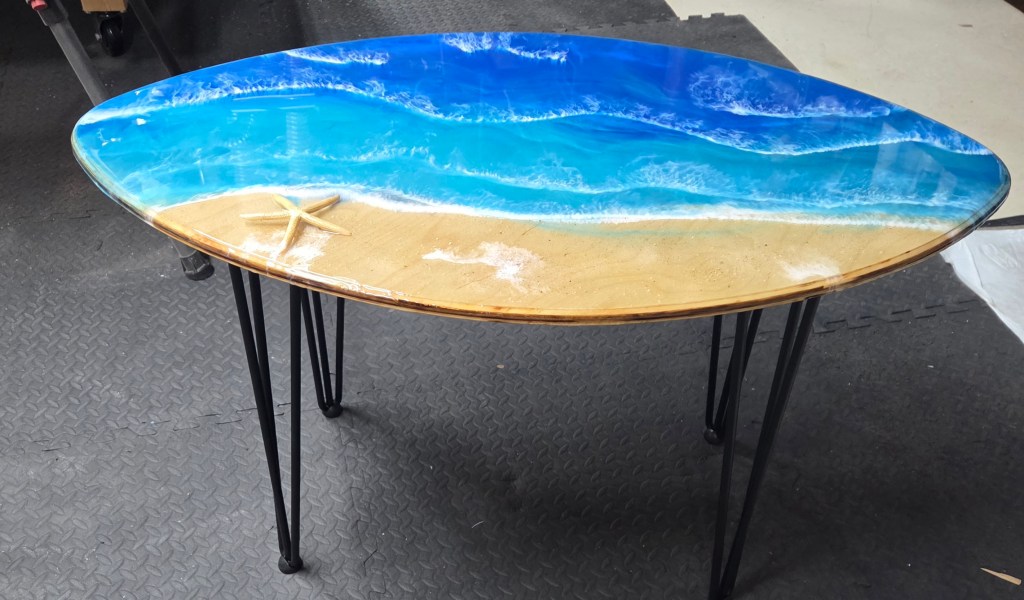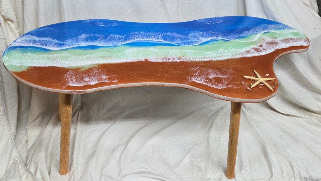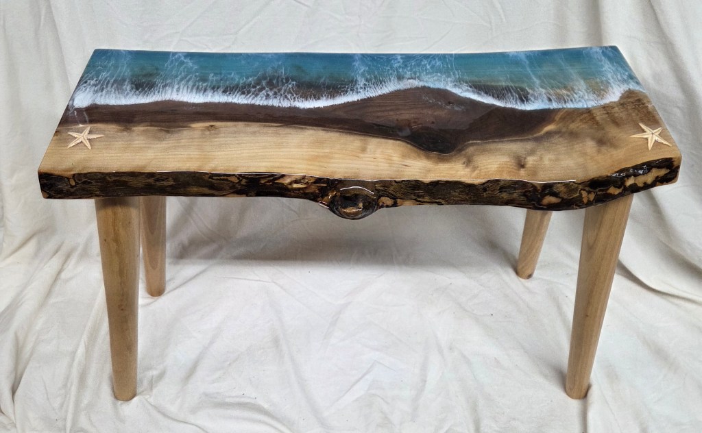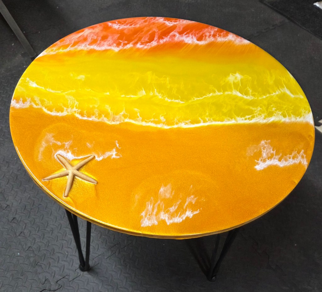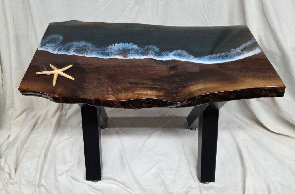Rough Edge Ocean Scene Epoxy Coating Side Table – $150