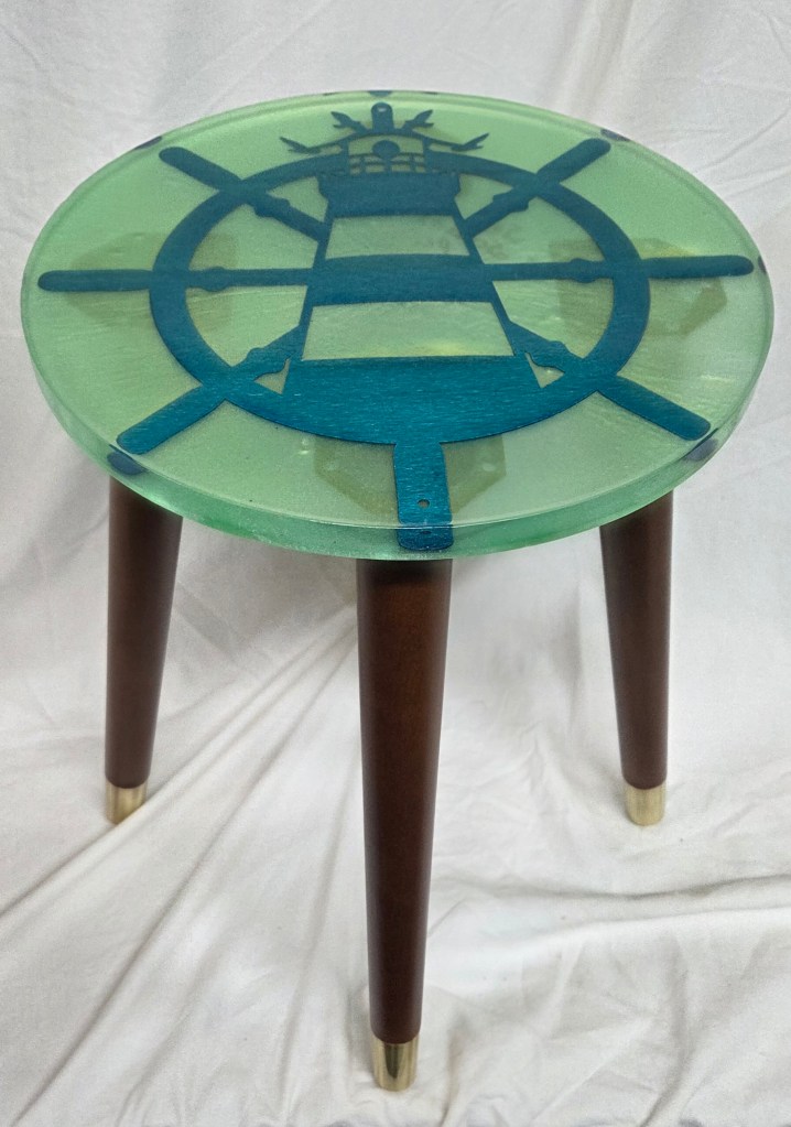 Turquoise Lighthouse Epoxy Resin Side Table – $65