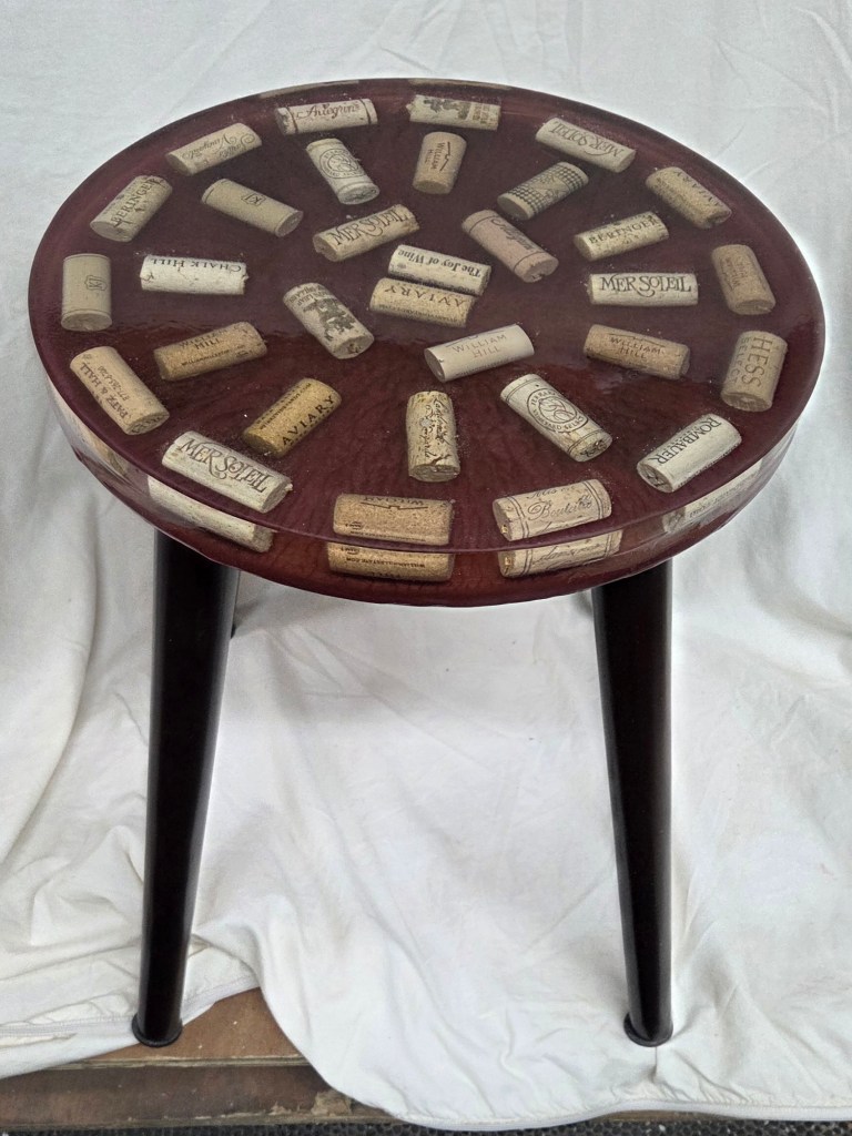 Burgundy Wine Cork Table – $60