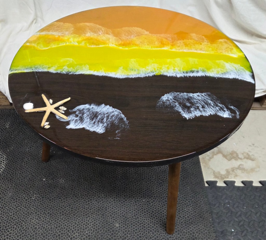 Rough Edge Ocean Scene Epoxy Coating Side Table – $150